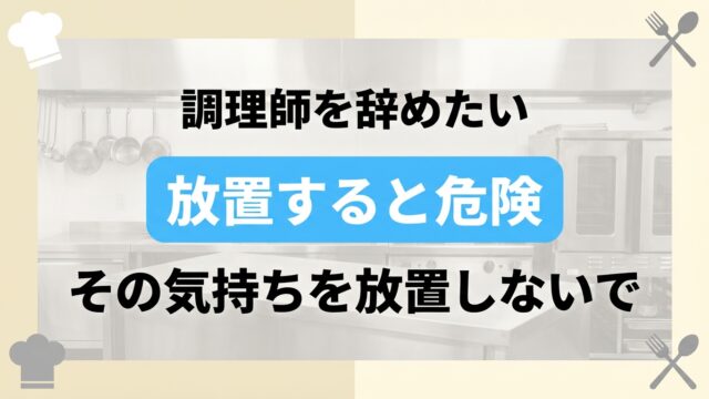 調理師の仕事は「きつい・休めない・給料が低い」というイメージがありますが、最近ではホワイトな職場も増えてきています。ブラックな環境で働き続ける必要はなく、適切な方法で転職すれば、残業なし・休日たっぷりの職場を見つけることが可能です。